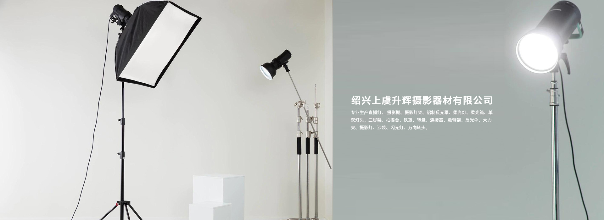 紹興上虞升輝攝影器材有限公司專業(yè)生產(chǎn)直播燈、 攝影棚、攝影燈架、鋁制反光罩、柔光燈、柔光箱、單雙燈頭、三腳架、拍攝臺、鐵罩、轉盤、連接器、懸臂架、反光傘、大力夾、攝影燈、沙袋、閃光燈、萬向轉頭。
